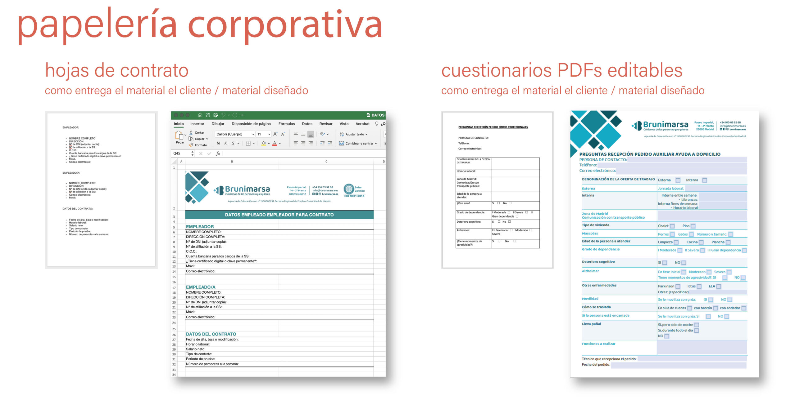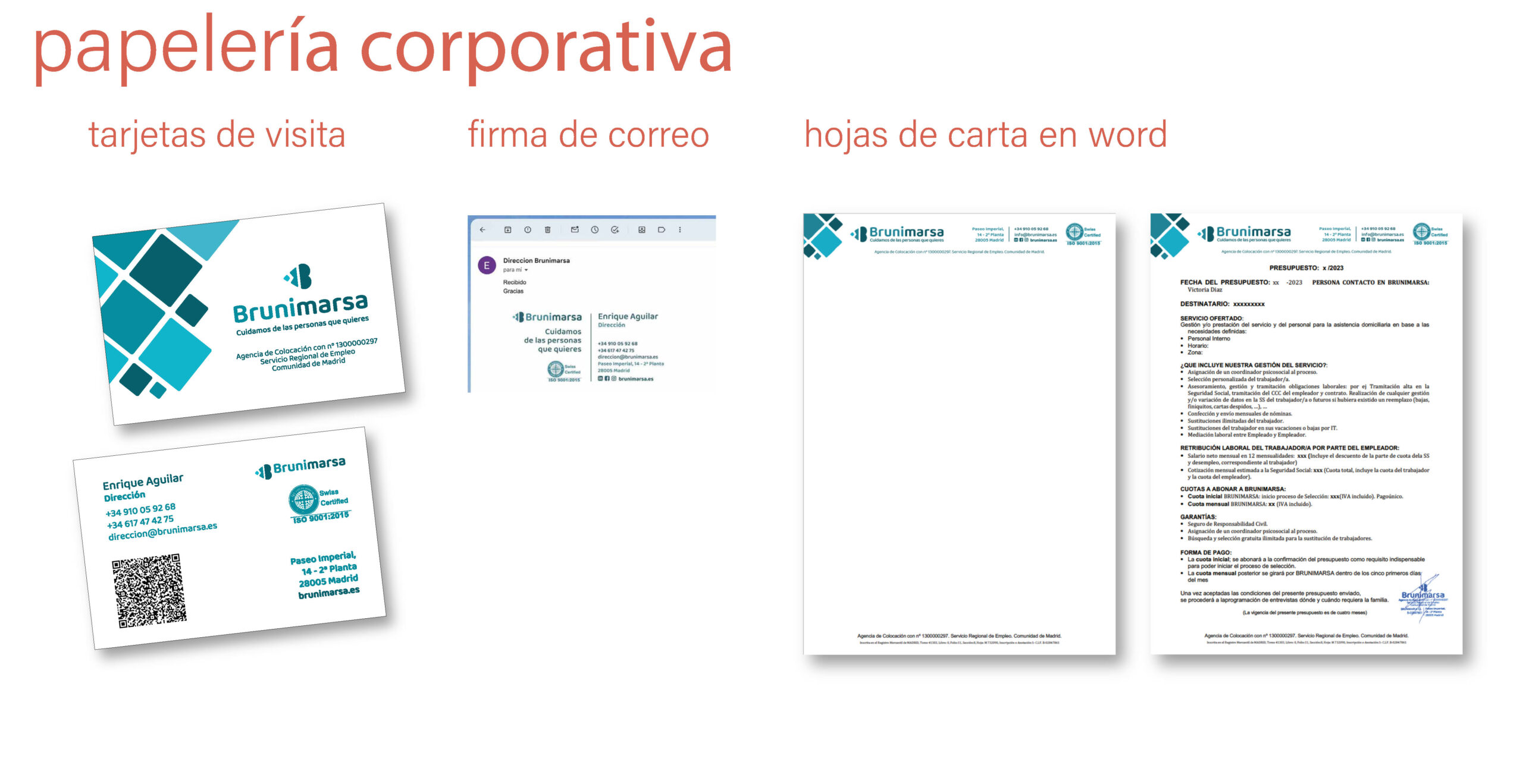 Brunimarsa es el claro ejemplo de cliente que empieza su actividad y lo único que tiene es el logotipo, una empresa especializada en el cuidado de personas mayores y servicios del hogar, en Madrid.
