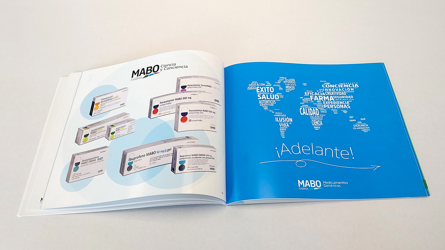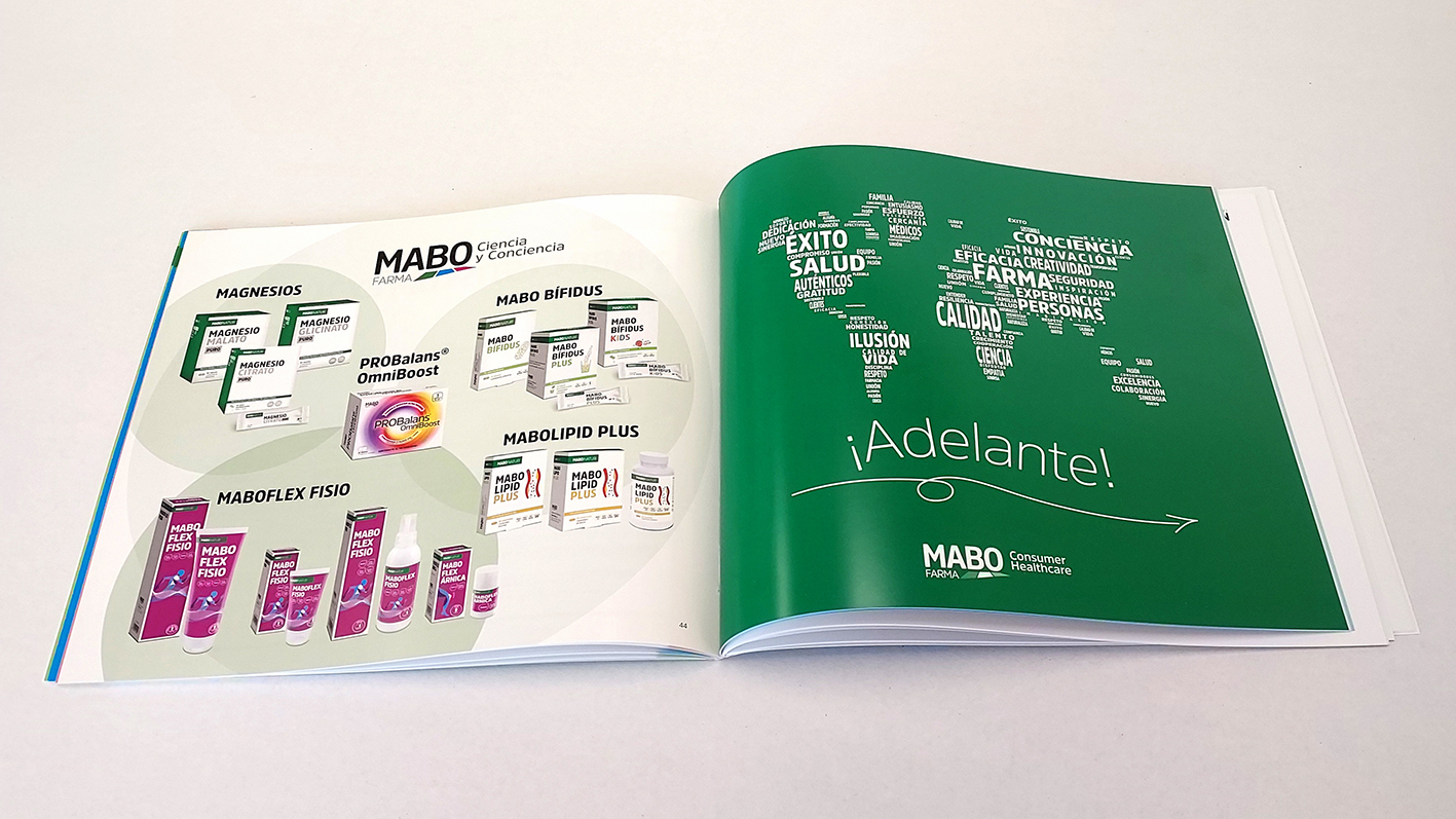 Nos encontramos con el reto de que MABO-FARMA, como muchos laboratorios, comercializan productos de receta y complementos alimenticios, que se manejan comercialmente de manera muy distinta e incluso en este caso pertenecen a líneas de negocio diferentes y estrategias de marketing distintas. Así que juntar todos los productos en un vademécum o catálogo, es un reto para un diseñador.