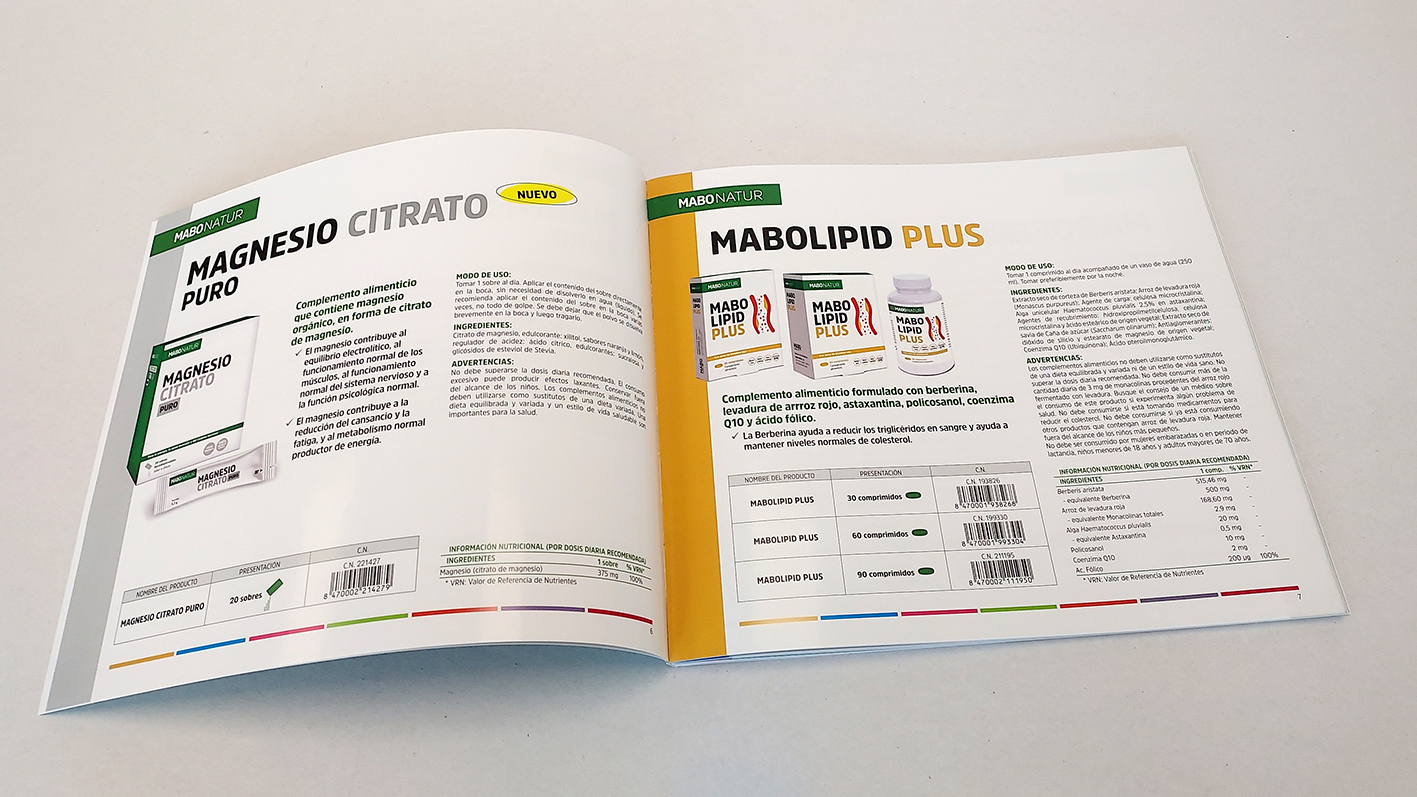 Para nosotros a supuesto plasmar en estas páginas, todo el trabajo de branding de MABONATUR, que habíamos hecho construyendo la marca que da cobijo a todos los complementos alimenticos del laboratorio, además de un gran trabajo de diseño y maquetación, ya que nos hemos encargado de todo.